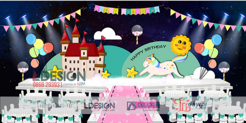 Biến sinh nhật của bé trở thành một ngày đầy màu sắc và phép thuật với chủ đề “Kỳ Lân & Cầu Vồng Đầy Sắc Màu”. LDecor sẽ giúp bạn tạo ra một không gian sinh nhật đầy mộng mơ, nơi bé có thể thỏa sức khám phá và vui chơi.