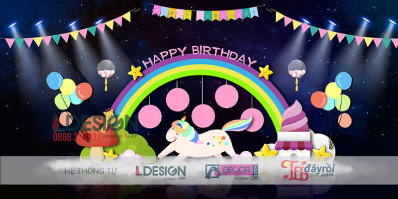 Trang Trí Sinh Nhật Chủ Đề Kỳ Lân & Cầu Vồng Đầy Sắc Màu